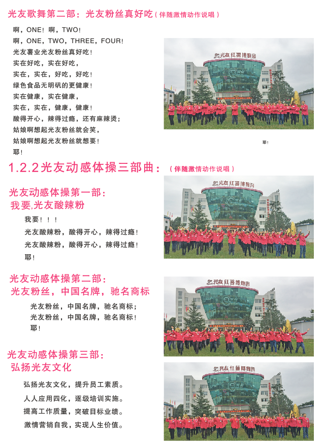 光友薯業(yè)歷來重視企業(yè)文化的發(fā)展和創(chuàng)新,29年來,已形成獨具特色、富有激情、 富有正能量的企業(yè)文化,光友文化是光友薯業(yè)的靈魂,是光友人共有的價值觀和行為準則,對員工無時不產生指導、熏陶、感染、規(guī)范的潛移默化作用,是形成團隊凝聚力的原動力,引導員工積極進取,快樂生活、快樂工作、走向成功。