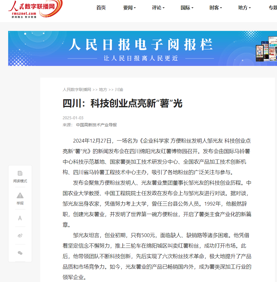 轉(zhuǎn)載人民數(shù)字聯(lián)播網(wǎng)——四川:科技創(chuàng)業(yè)點(diǎn)亮新“薯”光