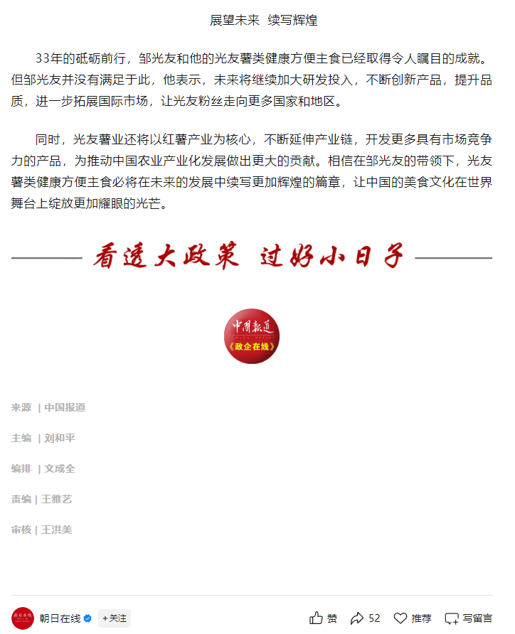 轉(zhuǎn)載朝日在線——鄒光友33年專(zhuān)注一根紅薯粉絲 暢銷(xiāo)全世界
