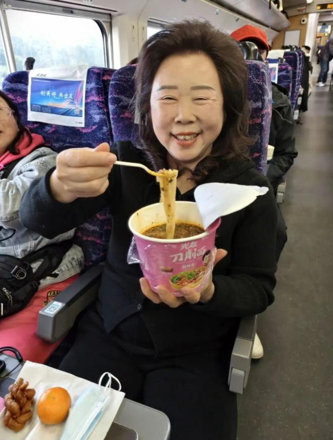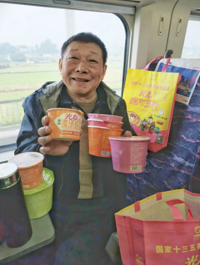 此次專列精選高正點(diǎn)率、廣覆蓋度的黃金線路,從黑龍江佳木斯出發(fā),歷時(shí)58小時(shí)跨越三千里疆域直達(dá)成都西,途經(jīng)沈陽(yáng)、北京、太原、西安等數(shù)十座核心城市,每日可服務(wù)近萬(wàn)名春運(yùn)旅客。發(fā)布會(huì)重點(diǎn)介紹專列特色與產(chǎn)品優(yōu)勢(shì),光友低Gi酸辣粉經(jīng)權(quán)威檢測(cè)Gi值僅48,符合國(guó)際低Gi健康標(biāo)準(zhǔn),憑借專利技術(shù)保留紅薯營(yíng)養(yǎng),沸水沖泡即可享用。專列車廂設(shè)置主題展示區(qū),不僅展示光友低Gi酸辣粉產(chǎn)品,更融入酸辣粉歷史文化元素,讓旅客在旅途之余,也能了解酸辣粉的發(fā)展脈絡(luò)。