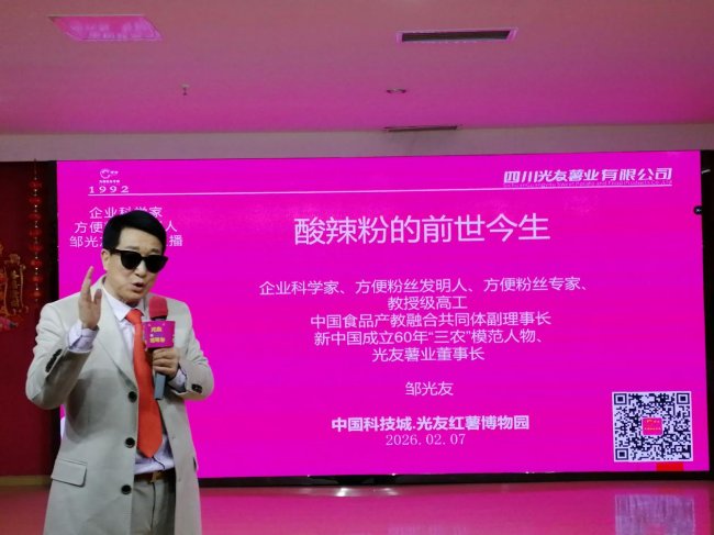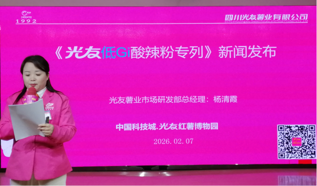 鄒光友先生表示,2月7日召開光友低Gi酸辣粉專列新聞發(fā)布會(huì),是光友薯業(yè)成立34年來(lái)首次舉辦的專列新聞發(fā)布會(huì)。在發(fā)布會(huì)現(xiàn)場(chǎng),鄒光友先生與現(xiàn)場(chǎng)嘉賓及直播間千萬(wàn)粉絲寶寶一同追溯酸辣粉的千年起源,探尋這一經(jīng)典美食的前世今生。