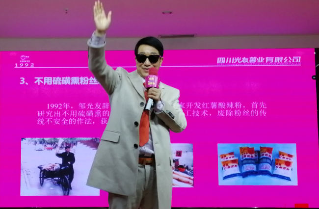 我代表綿陽(yáng)市企聯(lián)專委會(huì),對(duì)鄒光友先生、對(duì)光友薯業(yè)取得的巨大成功,致以最衷心的祝賀!祝愿光友薯業(yè)越來(lái)越好、再創(chuàng)佳績(jī)!”